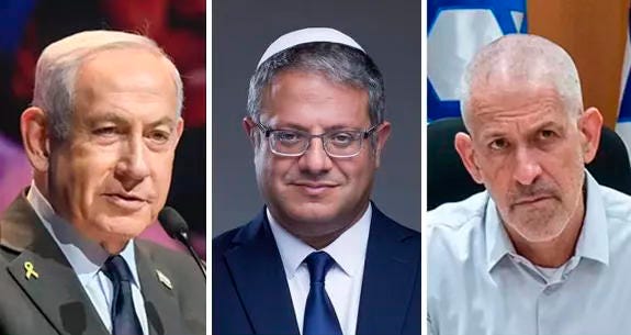 PM Binyamin Netanyahu, Internal Security Minister Itamar Ben-Gvir, Shabbak Chief Ronen Bar
